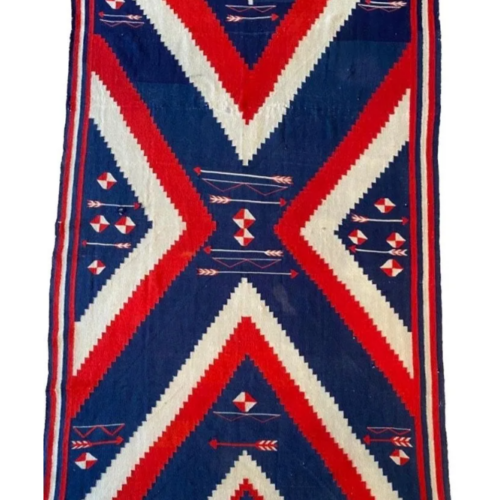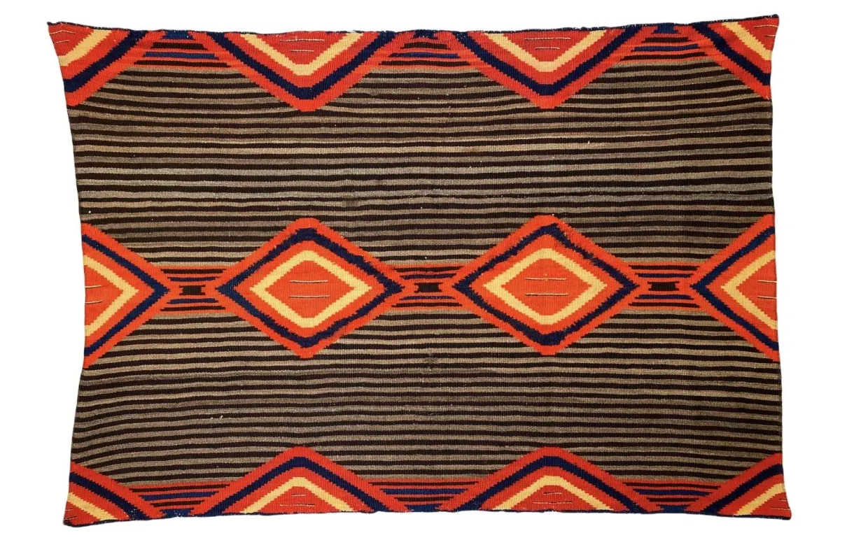 Antique and extremely rare early Navajo Chiefs Blanket, with two complete centrally-placed medallion motifs. Mid 19th Century. All known Chiefs blankets have just one complete central medallion making this an exceptionally rare Chiefs Blanket. Note: few old repairs and damaged at two sides. Size: 137 cms x 97 cms (54 ins x 38 ins).